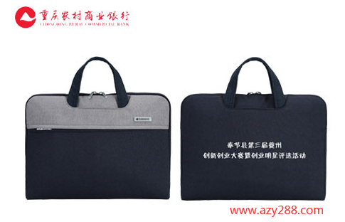 下圖是愛自由箱包為重慶農村商業銀行定制的手提公文包,該款公文包前幅logo就是采用激光雕鏤工藝制作,后幅采用的是絲印工藝。