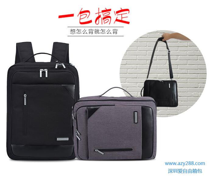 這是一款休閑商務多功能型跨界背包,在使用功能上可實現手提、單肩、雙肩、斜跨等多功能方式使用,一包在手,隨心切換使用方式,功能轉化便捷實用,背包整體精選優材,手感舒適、結實耐用。背包內外還采用多功能分類隔層設計,可分類放置電腦、文件、使用者隨身物品等,收納功能非常強大。該款背包整體簡約大氣,整體性強,美觀實用,功能豐富,用來做商務禮品是非常不錯的。