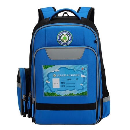書包采用EVA立體成型護脊背板設計,能有效緩解背負時背部的承壓力,前幅采用大面積安全反光標和PVC標識框,起到安全防護和有效識別的作用。側袋設計一側為水杯網袋,一側為立體拉鏈袋,方便存取一些常用小物品,袋身空間大,隔層豐富,訂一款收納強大而又具有安全保護的功能型書包。
