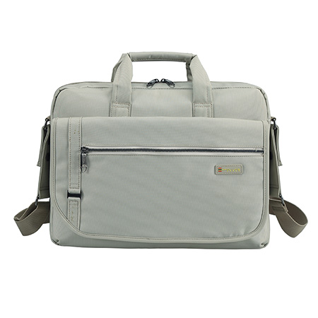 多功能質感商務電腦包,采用優質尼龍面料制作,結實耐用,耐磨耐刮,防潑水性能好,功能強大的它分為三層存儲,前幅設為A4尺寸拉鏈文件袋及小件辦公用品文件袋,可存放A4文件、ipad等以下物品;而主層則設為專業電腦層,以防震珍珠棉加厚設計,保護電腦等物品的安全,減少與人體碰撞的沖擊力。兩側設有勾型D字扣,實現可提可挎雙背負。