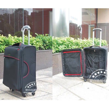 主料采用PU提花尼龍料,手感柔和,有可調節固定帶用于固定衣物等,有加大容量拉鏈圍。前身設有兩層隱藏式拉鏈袋,下面一層為隱藏式拉鏈,可放置一些常用物品,方便拿取,袋頂部有一個手把,用鉚釘固定,穩固性強,采用靜音萬向輪子,避震能力極強,減輕與地面的摩擦,讓你拉動輕松自如。